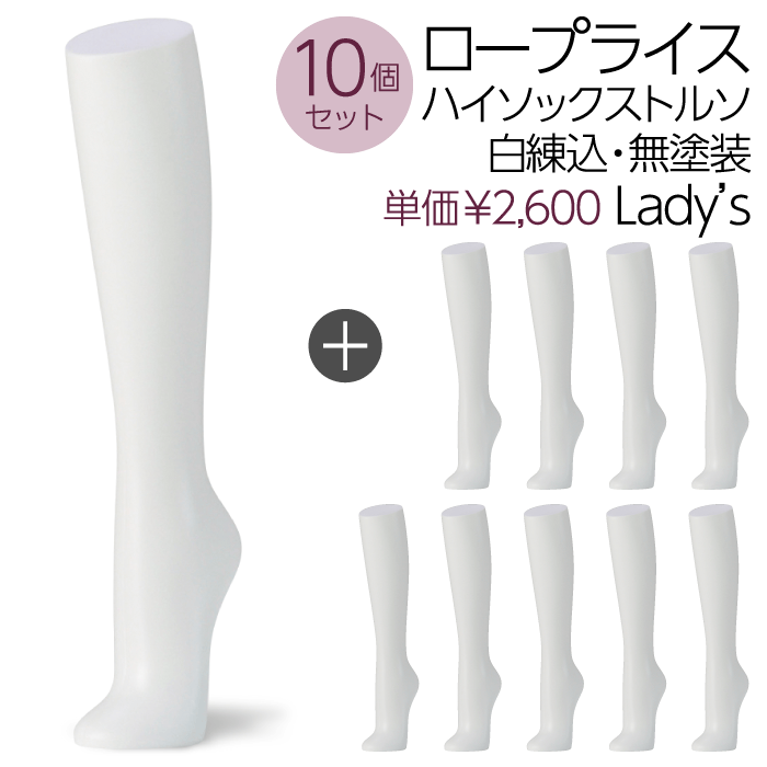 【送料無料♪安心・高品質・国産メーカー品】ハイソックストルソ、ソックス、卓上、レディース、婦人トルソー、パーツ、白・無塗装・エコ・マネキン、アンクル、展示、アパレル、ショップ、ウインドウ、店舗用、安い、軽い【お得な10個セット!SOH1W-10P】