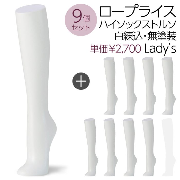 【送料無料♪安心・高品質・国産メーカー品】ハイソックストルソ、ソックス、卓上、レディース、婦人トルソー、パーツ、白・無塗装・エコ・マネキン、アンクル、展示、アパレル、ショップ、ウインドウ、店舗用、安い、軽い【お得な9個セット!SOH1W-9P】