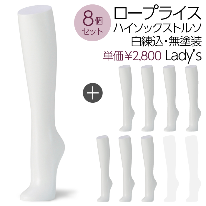 【送料無料♪安心・高品質・国産メーカー品】ハイソックストルソ、ソックス、卓上、レディース、婦人トルソー、パーツ、白・無塗装・エコ・マネキン、アンクル、展示、アパレル、ショップ、ウインドウ、店舗用、安い、軽い【お得な8個セット!SOH1W-8P】