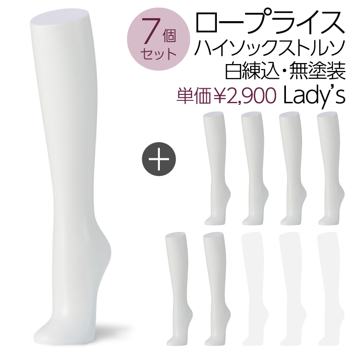 【送料無料♪安心・高品質・国産メーカー品】ハイソックストルソ、ソックス、卓上、レディース、婦人トルソー、パーツ、白・無塗装・エコ・マネキン、アンクル、展示、アパレル、ショップ、ウインドウ、店舗用、安い、軽い【お得な7個セット!SOH1W-7P】