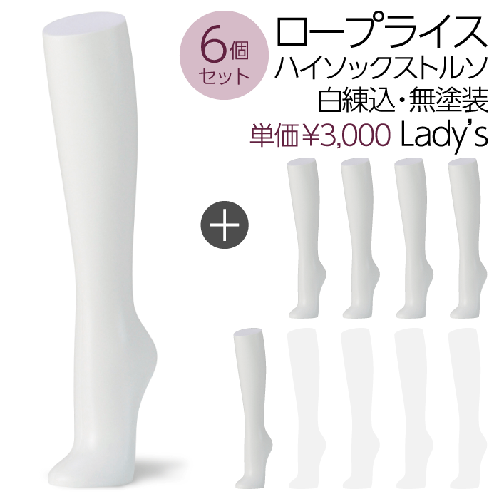 【送料無料♪安心・高品質・国産メーカー品】ハイソックストルソ、ソックス、卓上、レディース、婦人トルソー、パーツ、白・無塗装・エコ・マネキン、アンクル、展示、アパレル、ショップ、ウインドウ、店舗用、安い、軽い【お得な6個セット!SOH1W-6P】