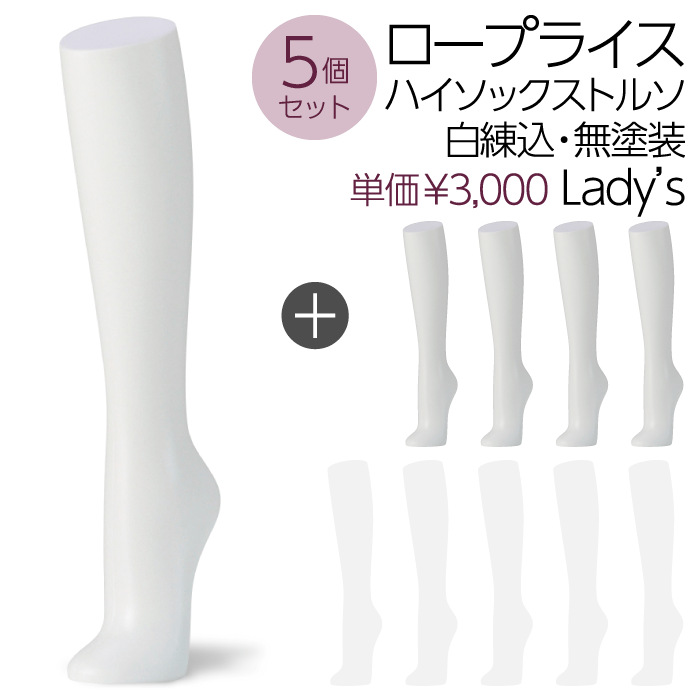 【送料無料♪安心・高品質・国産メーカー品】ハイソックストルソ、ソックス、卓上、レディース、婦人トルソー、パーツ、白・無塗装・エコ・マネキン、アンクル、展示、アパレル、ショップ、ウインドウ、店舗用、安い、軽い【お得な5個セット!SOH1W-5P】