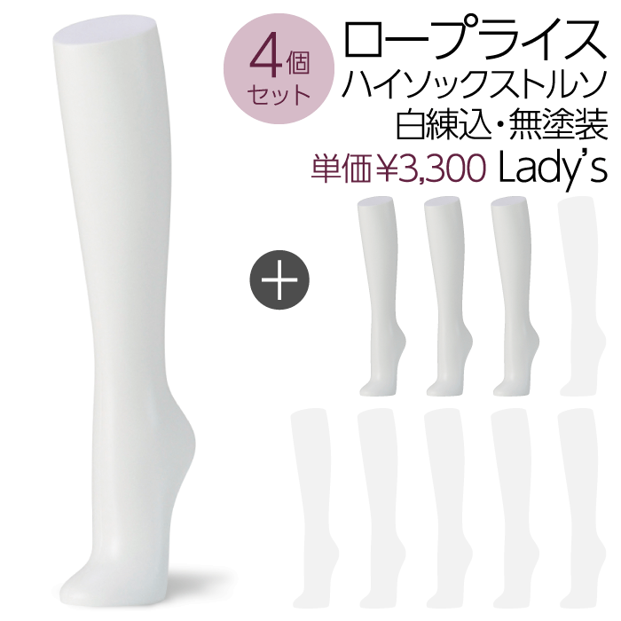 【送料無料♪安心・高品質・国産メーカー品】ハイソックストルソ、ソックス、卓上、レディース、婦人トルソー、パーツ、白・無塗装・エコ・マネキン、アンクル、展示、アパレル、ショップ、ウインドウ、店舗用、安い、軽い【お得な4個セット!SOH1W-4P】
