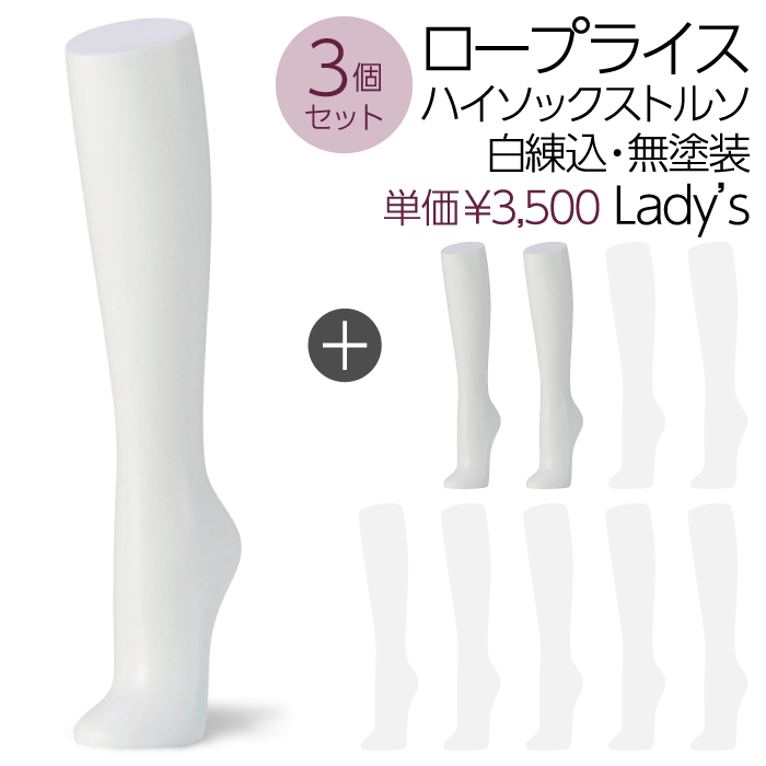 【送料無料♪安心・高品質・国産メーカー品】ハイソックストルソ、ソックス、卓上、レディース、婦人トルソー、パーツ、白・無塗装・エコ・マネキン、アンクル、展示、アパレル、ショップ、ウインドウ、店舗用、安い、軽い【お得な3個セット!SOH1W-3P】