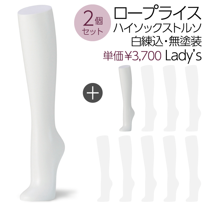 【送料無料♪安心・高品質・国産メーカー品】ハイソックストルソ、ソックス、卓上、レディース、婦人トルソー、パーツ、白・無塗装・エコ・マネキン、アンクル、展示、アパレル、ショップ、ウインドウ、店舗用、安い、軽い【お得な2個セット!SOH1W-2P】